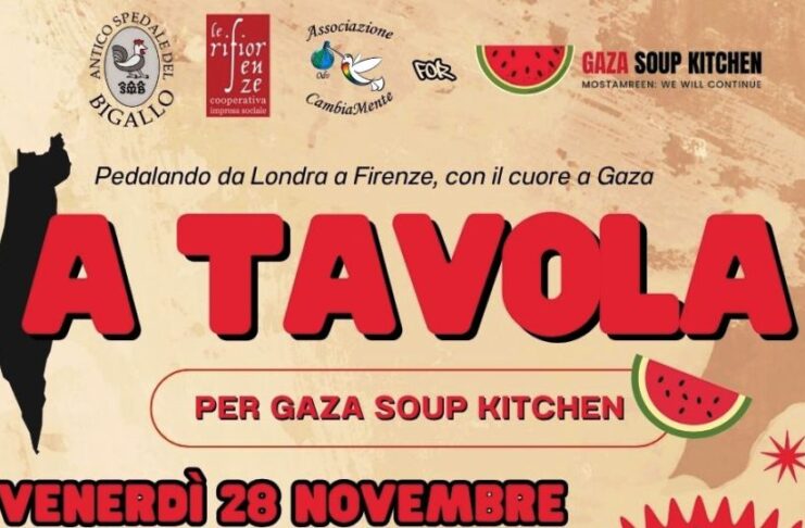 L’iniziativa, dal titolo “A Tavola, per Gaza Soup Kitchen”, si terrà oggi, venerdì 29 novembre, alle ore 20 all’antico Spedale del Bigallo a Bagno a Ripoli.