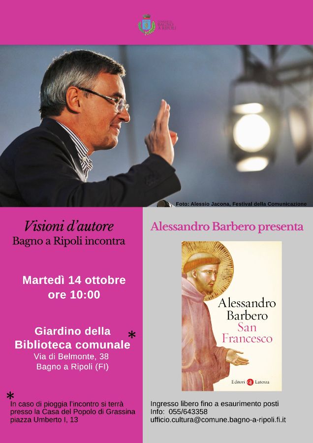 L’incontro con Barbero rientra nella rassegna culturale “Visioni d’autore”, ideata e promossa dal Comune di Bagno a Ripoli.