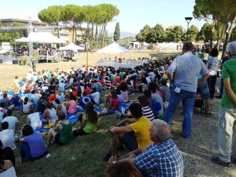 BAGNO A RIPOLI – Sta entrando nel vivo il grande raduno dei giovani nella fede presso il Giardino I Ponti di Bagno a Ripoli, in occasione delle celebrazioni per la Giornata Mondiale della Gioventù (GMG), che si terrà a Rio de Janeiro oggi.