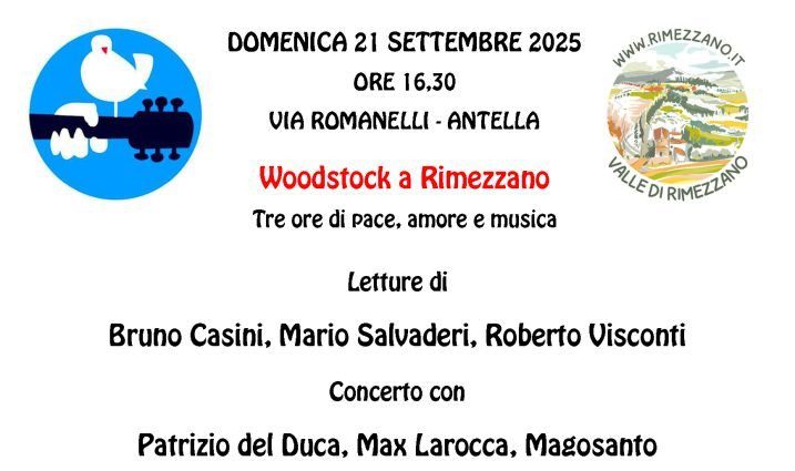 “Evitare un nuovo “Cubo Nero” a Rimezzano – rimarcano riferendosi ai recenti guai urbanistici di Fireze – è un auspicio condivisibile, reclamato dall’Associazione Valle di Rimezzano, che per domenica 21 settembre ha organizzato Woodstock a Rimezzano tre ore di pace, amore e musica, all’Antella, a cui saremo presenti”.