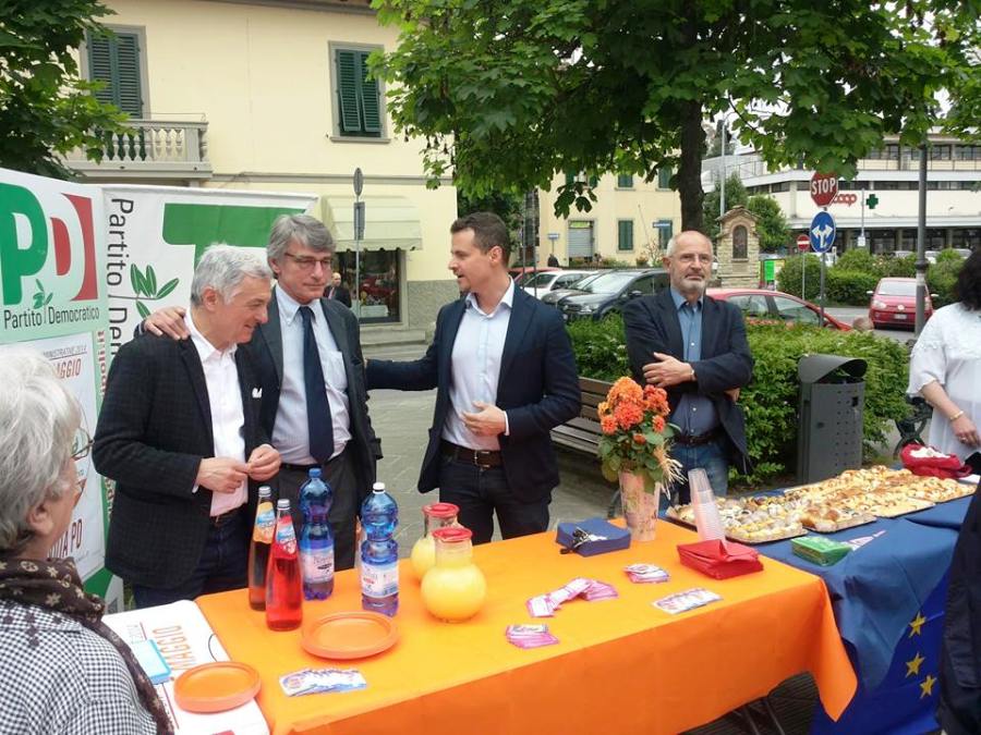 Al suo fianco, oltre al candidato sindaco della coalizione di centrosinistra Francesco Casini, il sindaco Luciano Bartolini, il segretario comunale del Pd Daniele Olschki, la vicesindaca designata da Casini in caso di vittoria Ilaria Belli, il segretario del circolo Pd di Antella Leonardo Lorenzini.