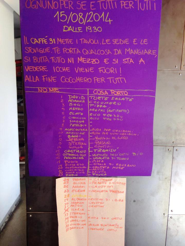 Dalle 19.30 in poi infatti il "Caffè 31" mette a disposizione i tavoli, le sedie e le stoviglie, per una sorta di cen-pic nic nel cuore di Grassina. Chi si è segnato per la cena ha indicato anche quello che porterà.