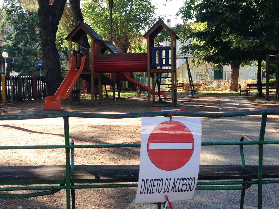 GRASSINA (BAGNO A RIPOLI) – "Quello che vedete nelle foto, è il triste cartello che le famiglie (categoria a noi molto cara) della frazione di Grassina trovano al loro arrivo dinanzi all’ingresso dei giardini della casa del popolo".