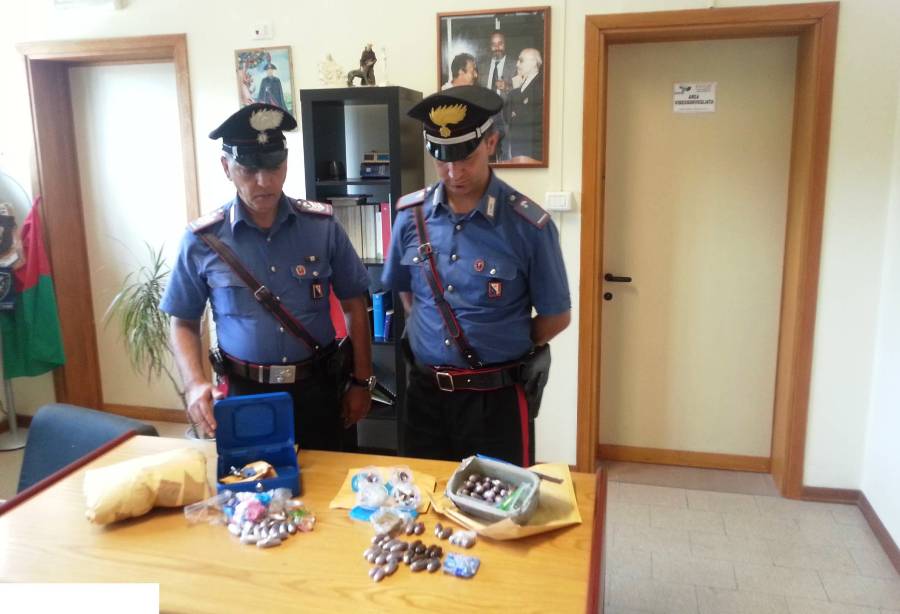 A seguito di numerosi appostamenti e pedinamenti nella giornata di ieri i militari della Stazione hanno sorpreso B.P., incensurato e come detto insospettabile, nel suo giardino di Reggello mentre stava scavando una buca dalla quale tirava fuori degli involucri voluminosi. Ben sigillati sia con nastro adesivo, sia in vaschette per alimenti che sono risultati contenere, a seguito della perquisizione effettuata,  92 ovuli di hashish del peso complessivo di circa 1 kg.