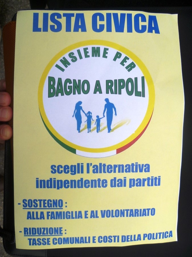 Non vivrete con difficoltà il passaggio dall’essere rappresentanti di un partito al fondare una lista civica? "No – dice ancora Locardi – perché lo si fa con un progetto, Insieme per Bagno a Ripoli, dove sono fondamentali temi ai quali teniamo molto. Come quello della famiglia, non a caso inserita nel simbolo; quello del mondo del volontariato, che deve essere premiato per quello che sta facendo sul territorio più di quello che è stato fatto fino ad ora; non di meno la diminuzione delle tasse comunali che stanno strangolando le famiglie e le imprese. Dove troviamo i soldi? Attingendo alle spese improduttive che il Comune ha voluto sostenere, per una cieca tipologia di amministrazione".