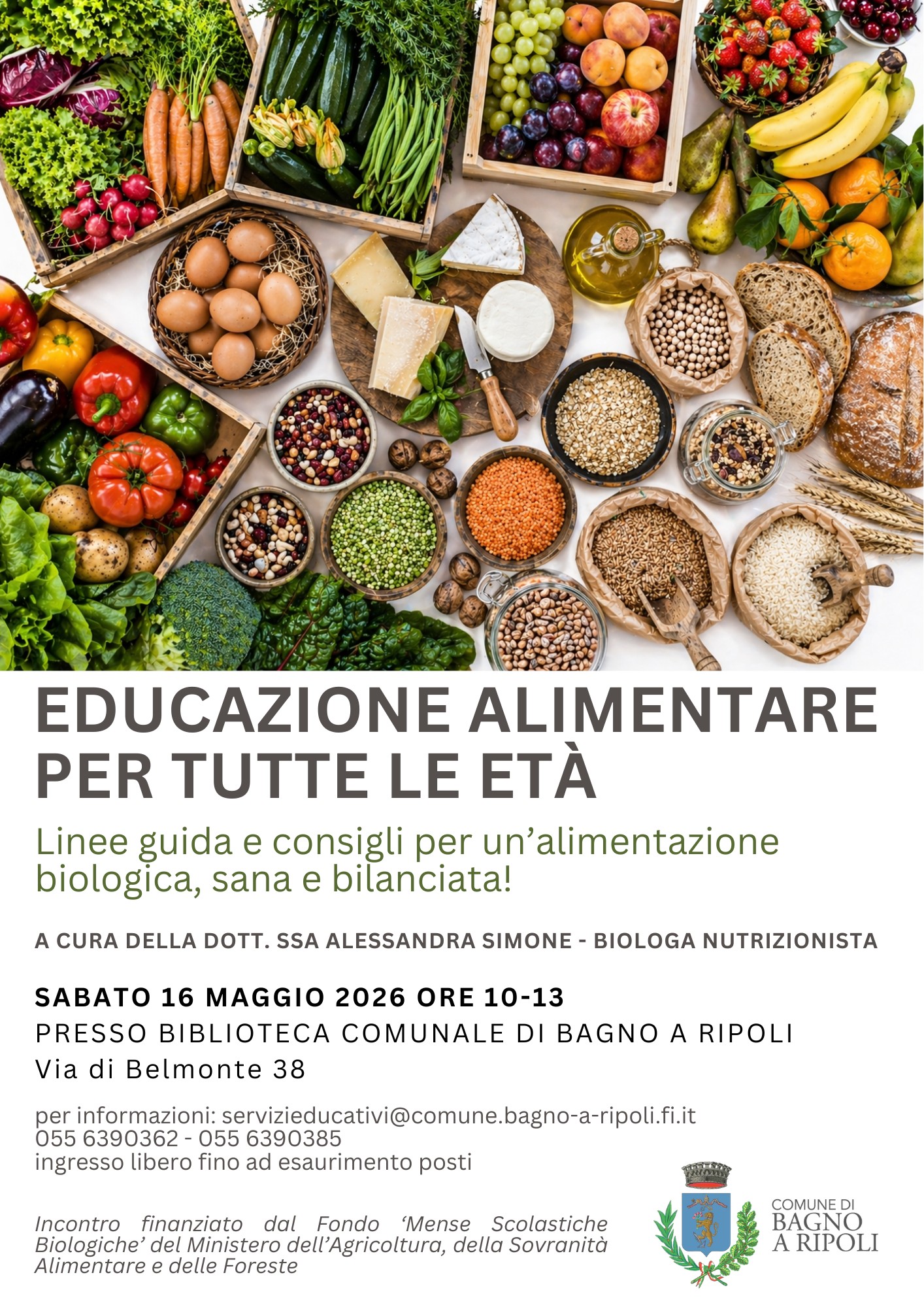 Sulla stessa scia, si inserisce l’incontro aperto a genitori, insegnanti, nonni e interessati di ogni età con la biologa nutrizionista Alessandra Simone, in programma sabato 16 maggio dalle 10.00 alle 13.00 in Biblioteca comunale. Durante l’iniziativa, dal titolo “Educazione alimentare per tutte le età”, la dottoressa Simone parlerà di alimentazione lasciando ampio spazio alle domande e al confronto.