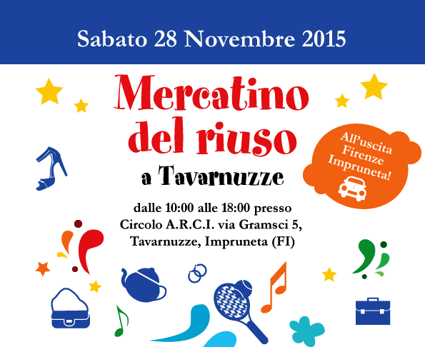Stiamo parlando del Mercatino del riuso, che il prossimo 28 novembre animerà le due più grandi sale del circolo Arci di Tavarnuzze.