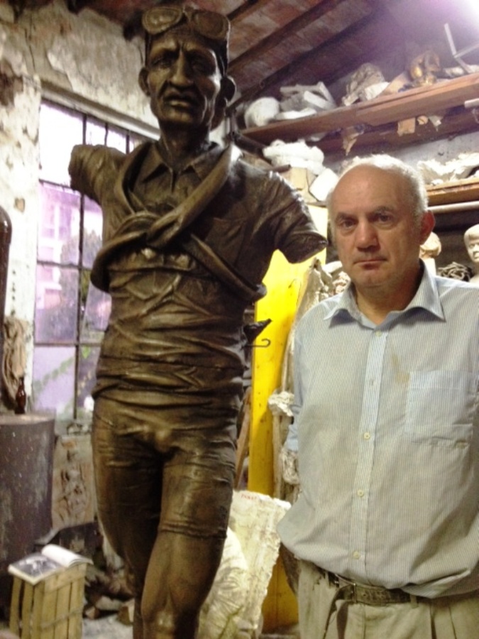 "Ci ho pensato parecchie volte, essendo anche io un ciclista, anche se non professionista, che in più sa anche modellare la creta. Ho riflettuto questa primavera che nessuno mai aveva fatto un’opera a Bartali e mi sembrava che si dovesse fare. Nessuno me lo ha commissionato, mi sono sentito di farlo e l’ho fatto. Le sue gesta mi hanno sempre impressionato e quindi l’ispirazione mi è venuta da sola. In più, pensando alle sue incredibili imprese, ho attraversato la Francia e la Spagna in bici per ben 17 volte".