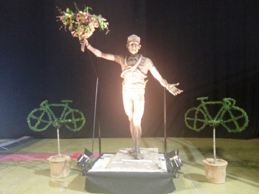 "Ne ho eseguite due, una è in creta e una è in gesso patinato a bronzo. Sono molto contento perchè quella in gesso è stata scelta per essere esposta al Mandela Forum, nella sala dove verrà fatta la conferenza stampa per i Mondiali di Ciclismo 2013. Di questo non nego di essere molto contento. Si tratta di un’opera imponente alta circa 3 metri, che ritrae Bartali in un momento di trionfo, mentre alla fine del Tour de France 1948, sorregge il mazzo di fiori. In futuro questo è un soggetto che svilupperò ancora, in quanto ricco di suggestioni artistiche".