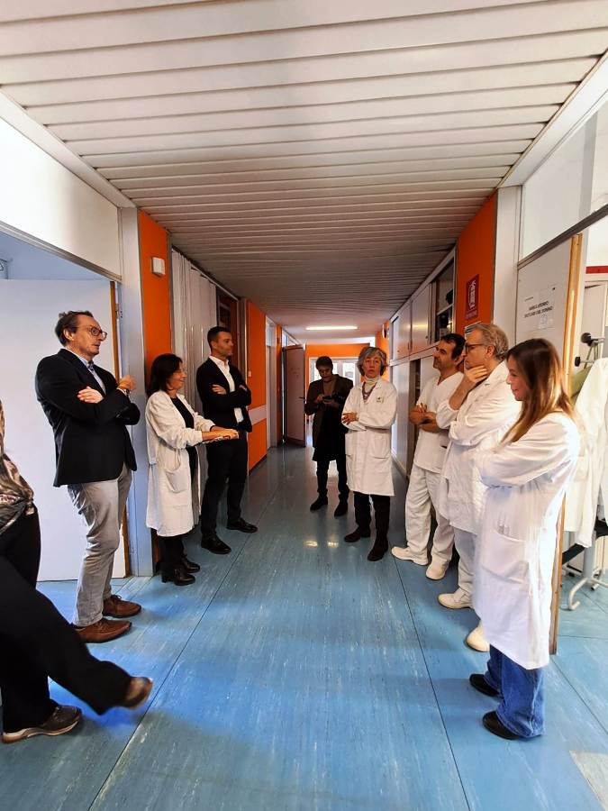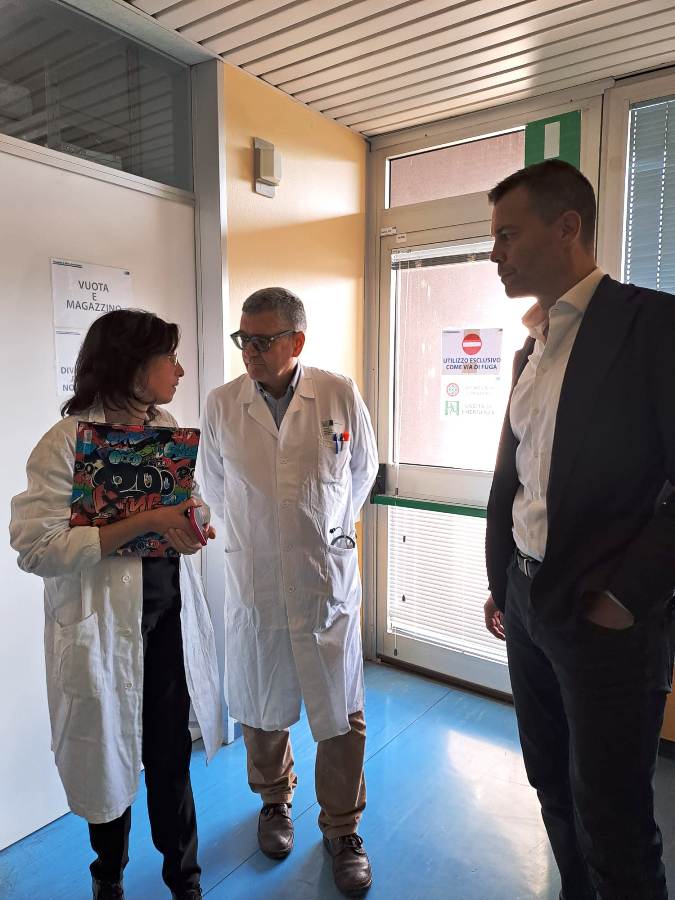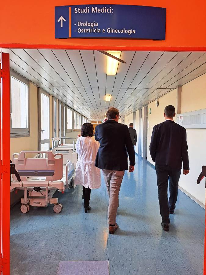 La visita ha preso il via dal sesto piano dove si trova il reparto di Malattie Infettive. Dopo i reparti del secondo piano, la visita è proseguita al primo piano in Neurologia e Pediatria.