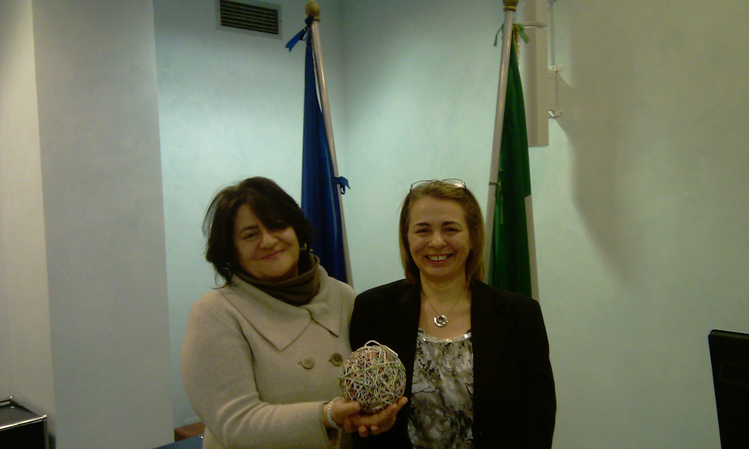 La premiazione è avvenuta a Roma nella Sala Spazio Europa della rappresentanza in Italia dell’Unione Europea. Le insegnanti referenti, Simona Forzoni e Lina Amelio (in foto), hanno ricevuto dalla giuria il premio consistente in una pergamena celebrativa, una fornitura di libri per la biblioteca scolastica, un’opera dell’artista Ivano Vitali realizzata con gomitoli di filo derivanti da carta riciclata nonché la candidatura al premio europeo.