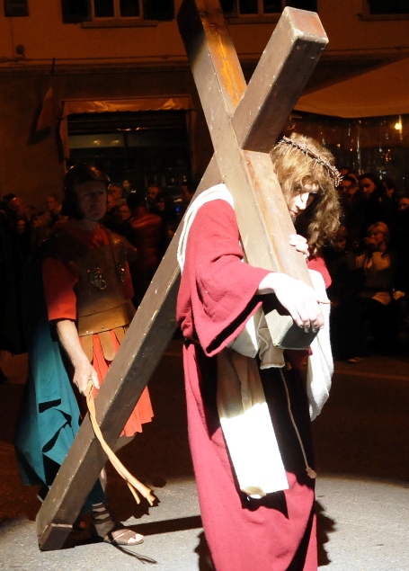 Ecco il programma del Venerdì Santo, venerdì 29 marzo: alle 21.15, sfilata del Corteo Storico per le vie del paese; sempre alle 21.15, Scene della vita e della Passione di Cristo sul Calvario. In caso di maltempo la manifestazione si terrà lunedì 1 aprile alla stessa ora (non si svolgerà tuttavia la sfilata del Corteo per il paese).