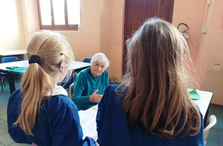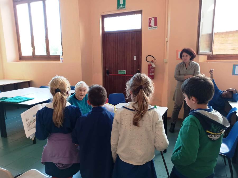I bambini, nei panni di aspiranti storici, nell’ambito del programma scolastico che li sta impegnando ad affrontare il significato del passato e delle fonti orali e scritte, hanno accolto l’ultranovantenne con grande affetto e curiosità nella sala del refettorio scolastico.