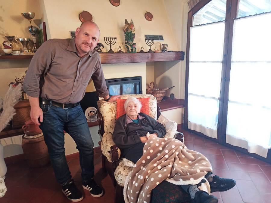 Anche il sindaco David Baroncelli ha voluto salutare la maestra centenaria, e ricordare con lei alcuni dei momenti della storia della scuola di Tavarnelle.
