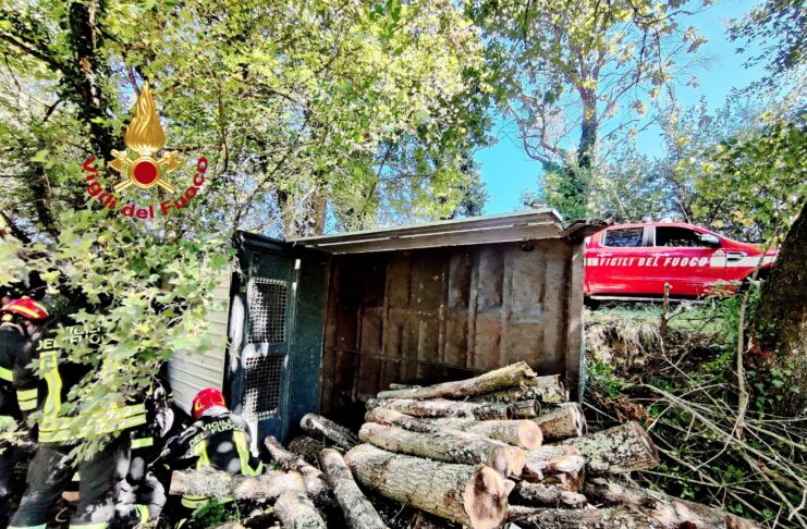 Barberino Val d’Elsa, furgone adibito al trasporto legna si ribalta in un fosso: uomo estratto dai vigili del fuoco