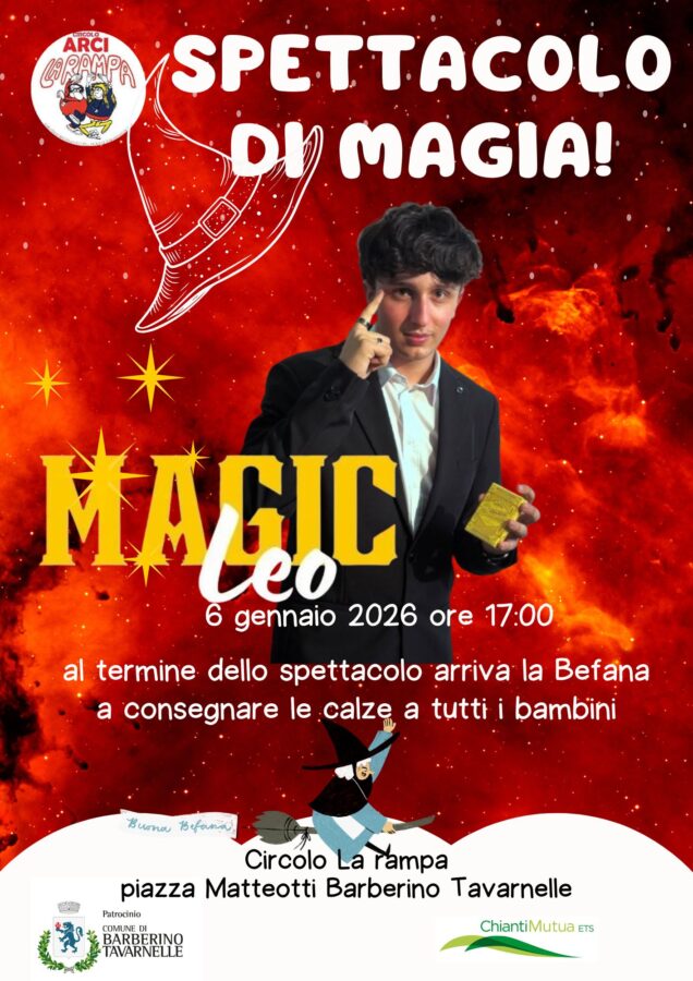 BARBERINO TAVARNELLE – In occasione della festività dell’Epifania, martedì 6 gennaio, il Circolo La Rampa di Tavarnelle organizza lo spettacolo di magia a cura dell’illusionista “Magic Leo”.