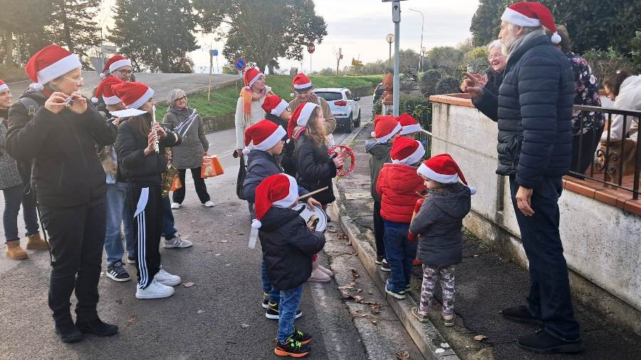 Camminando per le strade, l’allegra banda dei Babbi Natali della Filarmonica “Giuseppe Verdi” vestita di tutto punto, con tanto di barba e mantello rosso, ha dispensato auguri speciali al ritmo dei brani più famosi della tradizione natalizia.