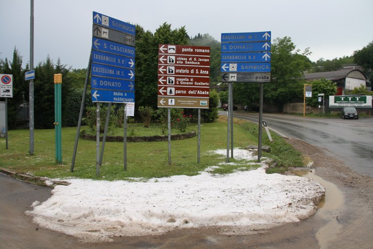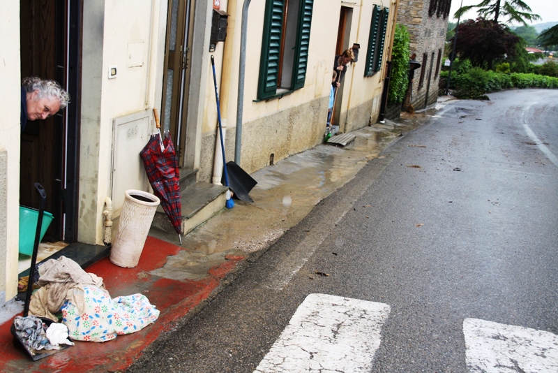 Situazione altrettanto difficile per i residenti del centro della Sambuca, il paese più colpito dalla bomba d'acqua del pomeriggio del 5 giugno. In particolare via Senese, dove l’acqua è riuscita ad entrare nonostante qualcuno, viste le pessime condizioni atmosferiche, si fosse premunito di mettere delle assi alle porte.