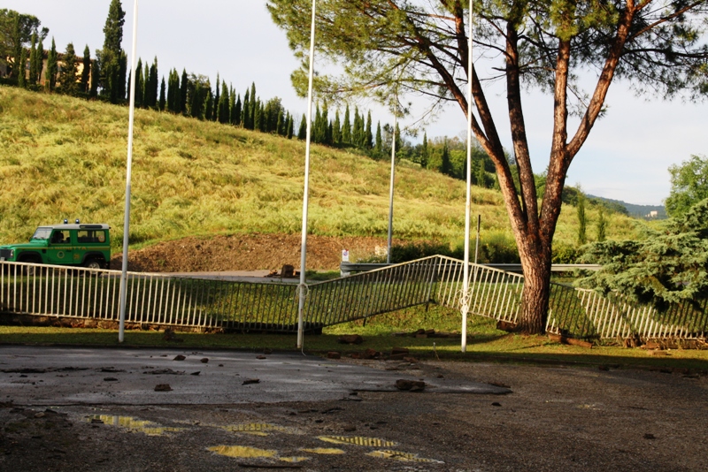 A poche centinaia di metri altro disastro: ancora una volta un piccolo borro è tracimato riuscendo a scardinare la recinzione di un'azienda. "Una cosa inaudita, mai vista prima" ci ha raccontato un volontario de “La Racchetta” di Tavarnelle, prontamente intervenuta, che con la Jeep ci ha portato a documentare quanto avvenuto.