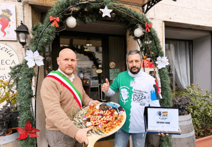 Da domani, domenica 7 dicembre, davanti al locale di via Roma, a Tavarnelle, insieme alle targhe conferite dal Gambero Rosso, Cinquanta Top Pizze e quelle che lo raffigurano come campione d’Italia e del mondo ottenute in più occasioni, campeggerà uno speciale dono natalizio.