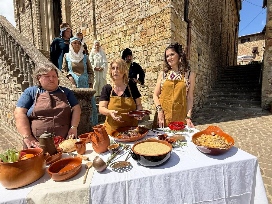 A narrare l’antica identità del castello valdelsano sono stati i volti, le voci, le testimonianze di Francesco Mattonai, Elena Capone, Anna Brancaccio, incorniciati dal corteo storico della Festa medievale, le sarte dell’atelier Sartor Antiqua e tutta la realtà di volontarie e volontari, donne e uomini di ogni età che quotidianamente riscoprono e tramandano i saperi e i sapori della memoria.