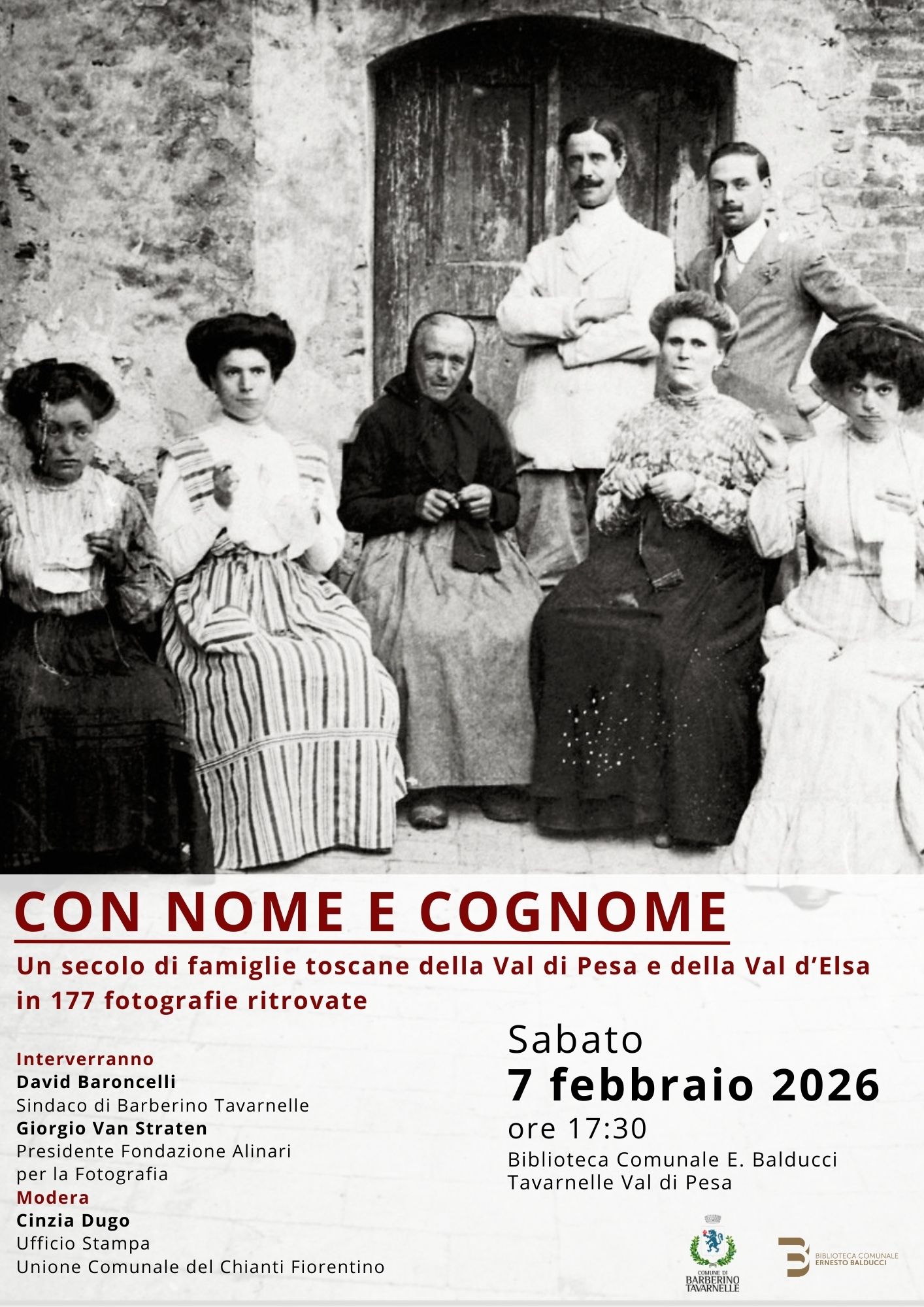 L’amministrazione comunale ha voluto valorizzare ed evidenziare l’immenso lavoro di Mario con la pubblicazione di una selezione delle foto, 177, che ritraggono le famiglie di Barberino Tavarnelle, dal 1873 agli anni Settanta. Il libro “Con nome e cognome. Un secolo di famiglie toscane della Val di Pesa e della Val d’Elsa in 177 fotografie ritrovate” sarà presentato nella biblioteca comunale “Ernesto Balducci” di Tavarnelle sabato 7 febbraio alle ore 17.30 alla presenza del sindaco David Baroncelli, dell’autore Mario Forconi e del presidente della Fondazione Alinari per la Fotografia Giorgio Van Straten.