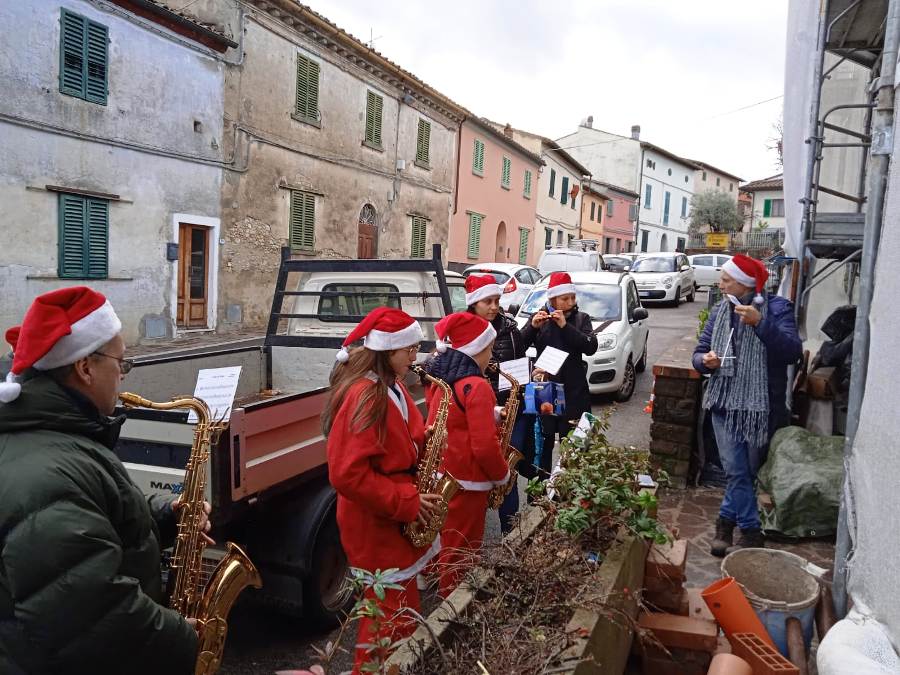MARCIALLA (BARBERINO TAVARNELLE) – Il vento della musica ha suonato nella campagna di Barberino Tavarnelle: per portare auguri sonori e itineranti ai nonni del paese.