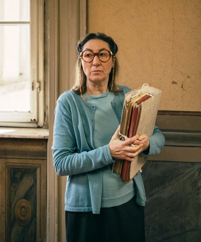 Ora veniamo al ruolo di Barbara, le cui scene sono state girate quasi tutte nell’archivio della Fondazione Centro Studi Ragghianti, a Lucca: “Vincenzina, l’archivista dalla memoria infallibile, aiuta l’ispettore a trovare faldoni con nomi e date”.