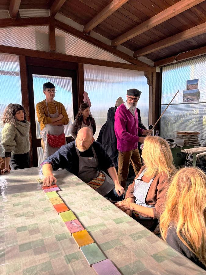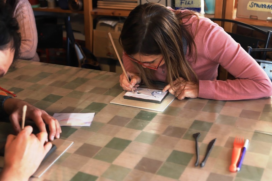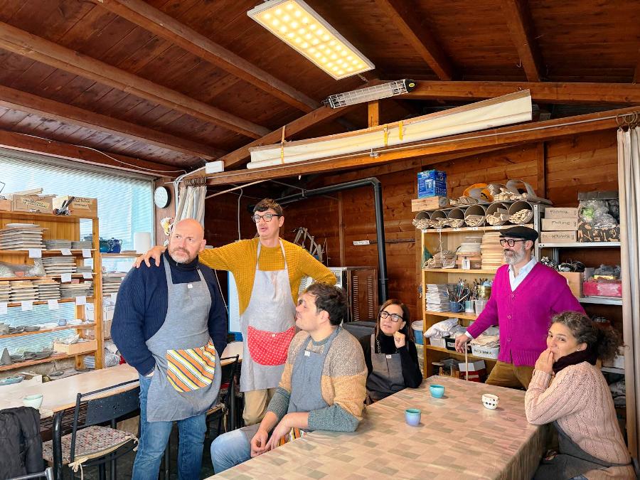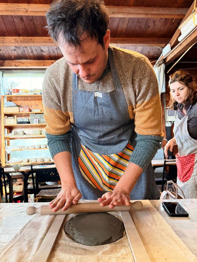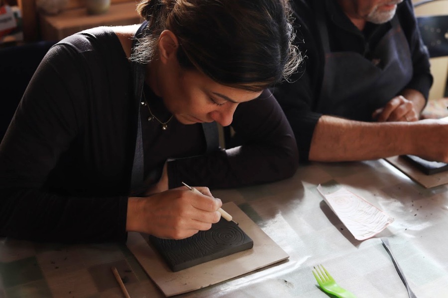 Poi il gruppo, guidato da Adele Giuntini, Francesco Casella, le operatrici e i giovani dell’associazione Le Tre e un Quarto, con la presidente Candida Vettori, è passato alla lavorazione dell’argilla e alla realizzazione delle mattonelline che in un secondo successivo saranno cotte in forno e smaltate.