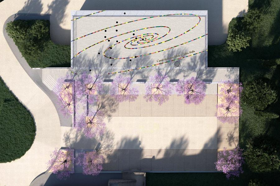 “Il progetto, che ha già messo in campo 1.300 tessere del mosaico artistico, – fa sapere il sindaco Baroncelli – da installare su una superficie complessiva di 300 metri quadri circa, prevede la raffigurazione di una spirale i cui bracci, simbolo di unità e ciclo vitale, saranno composti dalle mattonelle nate dall’estro dei cittadini e delle cittadine, la maestosa opera collettiva indicherà i maggiori punti di interesse del territorio tra cui l’Osservatorio Polifunzionale del Chianti, la terrazza accoglierà inoltre un custode speciale, una scultura bronzea del nostro caro Marco Borgianni e sarà arricchita dalla presenza di un celebre verso dantesco L’amor che move il sole e l’altre stelle“.