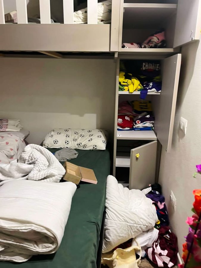 “Sono salita su – prosegue nel suo racconto – e le camere da letto erano completamente ribaltate: hanno portato via tutto l’oro dei bambini”.