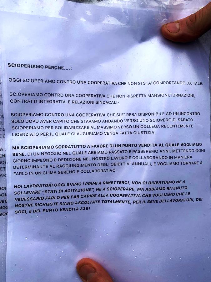 “Si aggiunge inoltre – precisano – l’importanza che da parte di Unicoop Firenze vengano recepite le istanze dei lavoratori e lavoratrici per ripristinare un clima di serenità e il rispetto della dignità lavorativa e dei diritti fondamentali all’interno della struttura di vendita locale”.