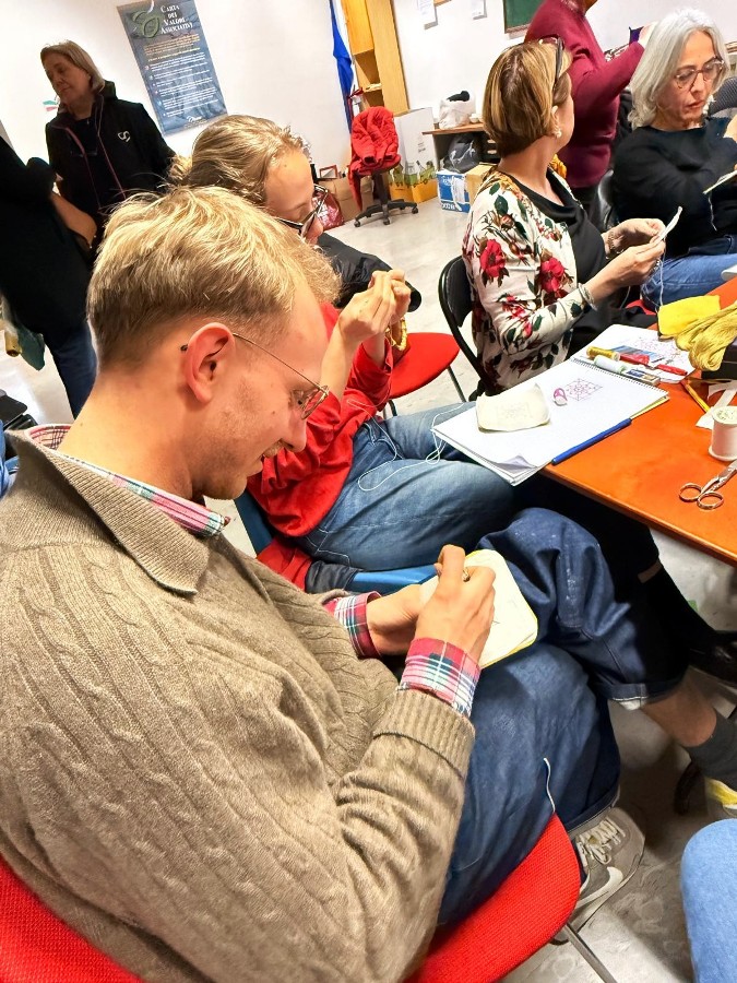 “Mi piace il senso di sfida che stimola questo lavoro – dichiara Alexander – è un ricamo non semplice, ce la metterò tutta ad imparare dalle brave insegnanti del corso”.