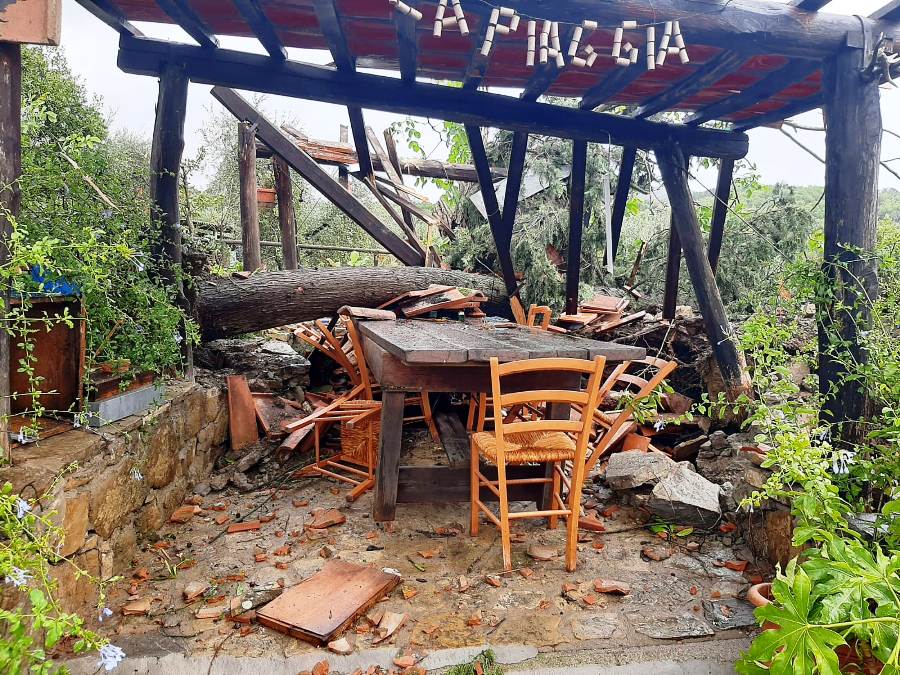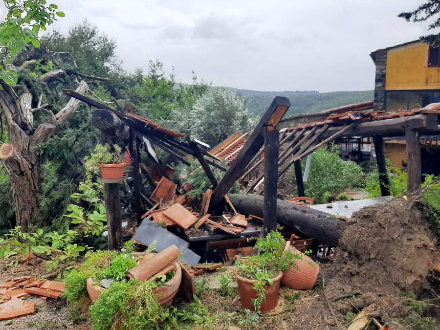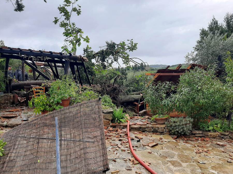 La supercella di per sé non spiega i danni tanto rilevanti nella zona sud di Castellina in Chianti, tra cui alberi sradicati, tetti scoperchiati e strutture danneggiate.