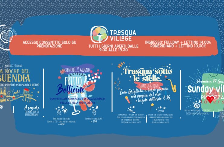 TRASQUA (CASTELLINA IN CHIANTI) – Inizia subito col botto la settimana di attività ed eventi del Trasqua Village, che, a pochi giorni dall’apertura, propone un programma in grado di far divertire persone di tutti i gusti e tutte le età.
