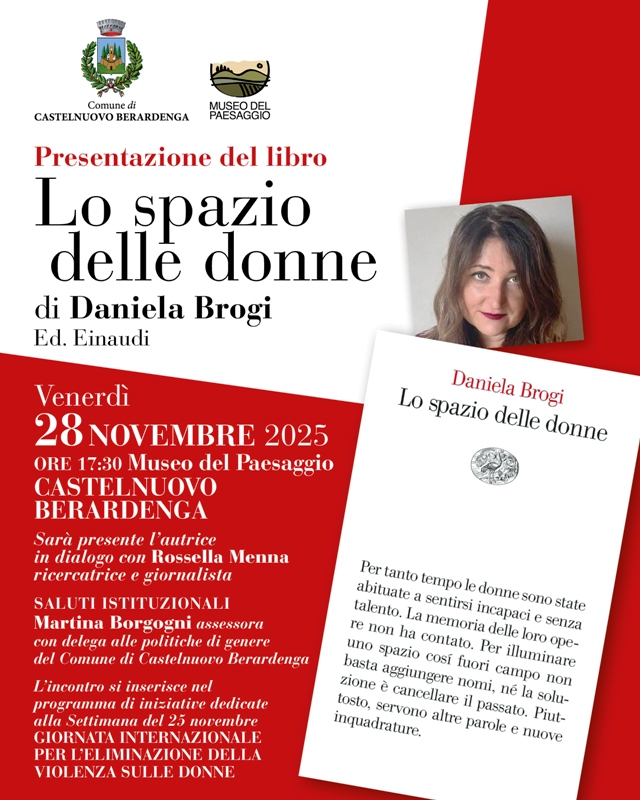 Venerdì 28 novembre alle ore 17.30, al Museo del Paesaggio, si terrà la presentazione del libro “Lo spazio delle donne” (Einaudi) di Daniela Brogi, saggista e docente di Letteratura italiana contemporanea all’Università per Stranieri di Siena.