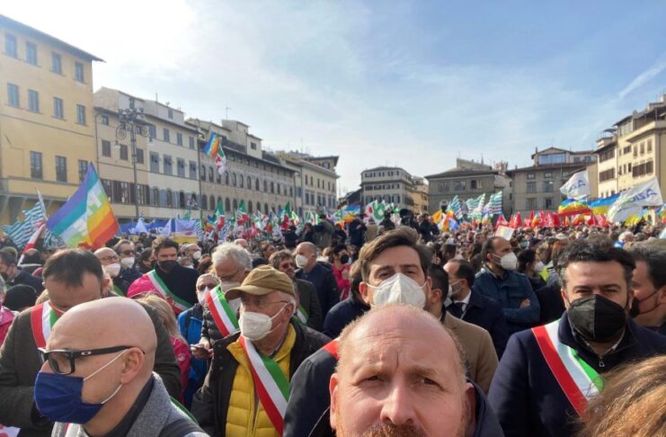 “Grande Firenze, grande Toscana, grande Italia. Sono felice di vedere questa piazza nuovamente irradiare a tutta l’Europa la sua vocazione alla pace e l’auspicio che si arrivi presto ad una tregua”.Â