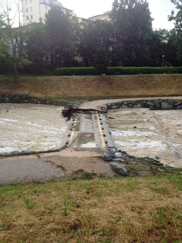 Ha tenuto invece botta, come potete vedere scorrendo le foto sopra, il contestatissimo guado pedonale e ciclabile sull'Ema, a Grassina in via di Tizzano: anche stavolta ha superato il test.