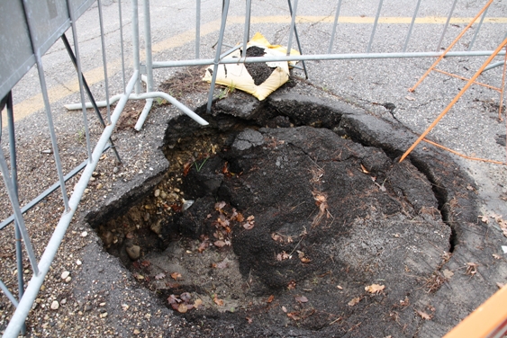 Ci siamo recati così sul posto e, come dimostrano le foto che abbiamo scattato, la grossa buca continua a ingrandirsi. Non vogliamo passare avanti a tecnici che sanno fare bene il loro lavoro, ma da alcune persone del posto abbiamo saputo che nel punto dove si è formata la buca, ci dovrebbe essere una vecchia cantina, usata fino a non molto tempo fa come stalla. Vuoi vedere che il cedimento probabilmente è causato dalla rottura della volta di questa vecchia cantina inutilizzata?