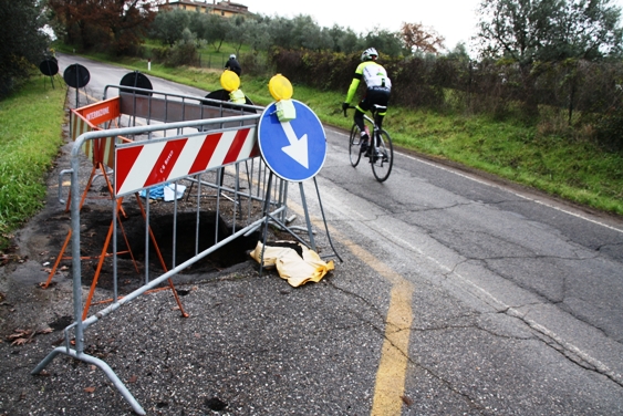 Ma, ci assicura chi questa strada la frequenta tutti i giorni, quella buca è da un bel po’ che crea preoccupazione a ciclisti, scooteristi e automobilisti. La Provincia di Firenze (responsabile di quel tratto di strada) ha inviato sul posto le squadre addette a eseguire la manutenzione, che di volta in volta, hanno cercato di riempirla con dell’asfalto, ma inevitabilmente questo viene risucchiato nel “cratere”.