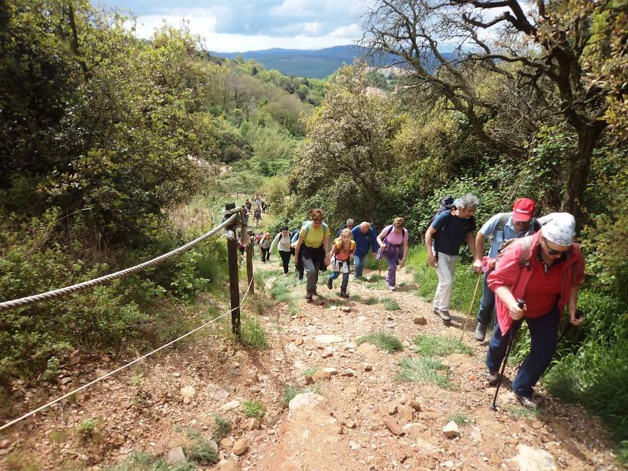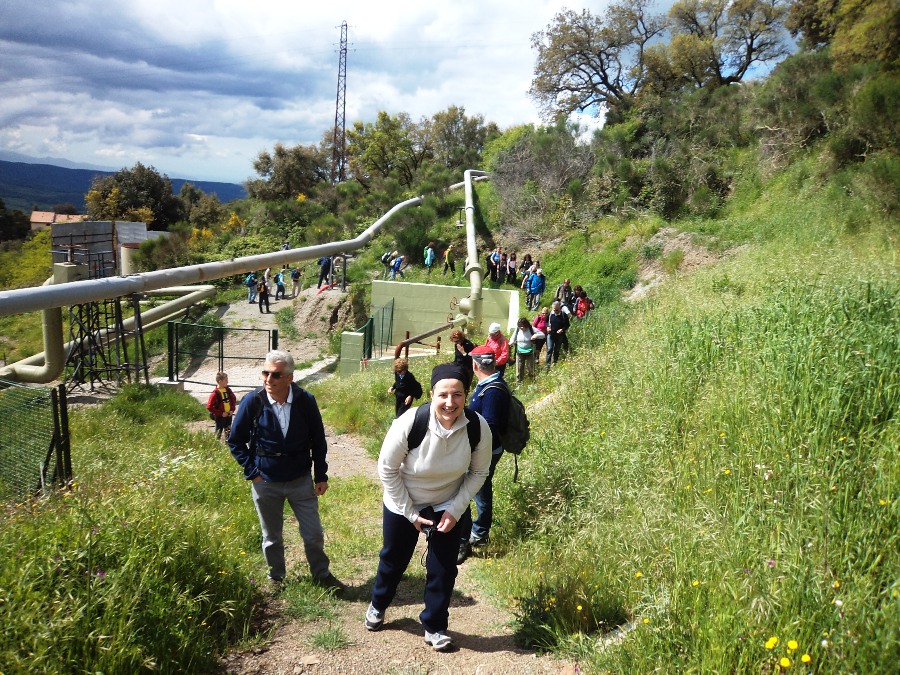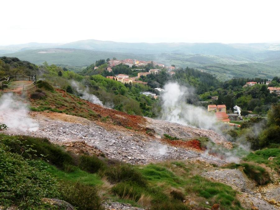 "Una faticosa salita, dal versate nord – si continua – ci porta in quota, attraverso bellissimi boschi di castagni, più consoni alle altitudini della zona, fino a riassagiare il paesaggio brullo e spettacolare delle fumarole e delle biancane. Sbucati nuovamente nel fascinoso cratere fumante della mattina, fatta la doverosa foto di gruppo, siamo risaliti un poco per raggiungere la strada che scende a Monterotondo passando a fianco di una delle centrali geotermoelettriche della zona per ammirare l'imponenza della torre di raffreddamento e comprendere un poco il processo industriale che dalla cattura di questi fluidi naturali porta a produrre energia elettrica".