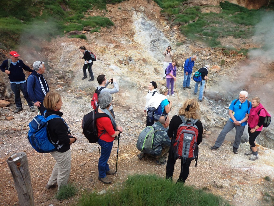 Il percorso continua tra curiosità naturalistiche, vapore che esce dalle fenditure delle pietre, concrezioni di vario colore, acqua bollente che scorga dal terreno, rumori e sibili strani degni di un film thriller.