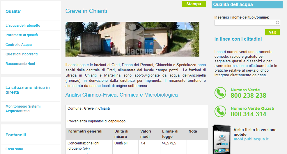 CHIANTI FIORENTINO – A partire da alcuni giorni è possibile verificare sul sito di Publiacqua (www.publiacqua.it) i principali parametri dell'acqua del rubinetto in maniera più puntuale rispetto a quanto finora possibile.