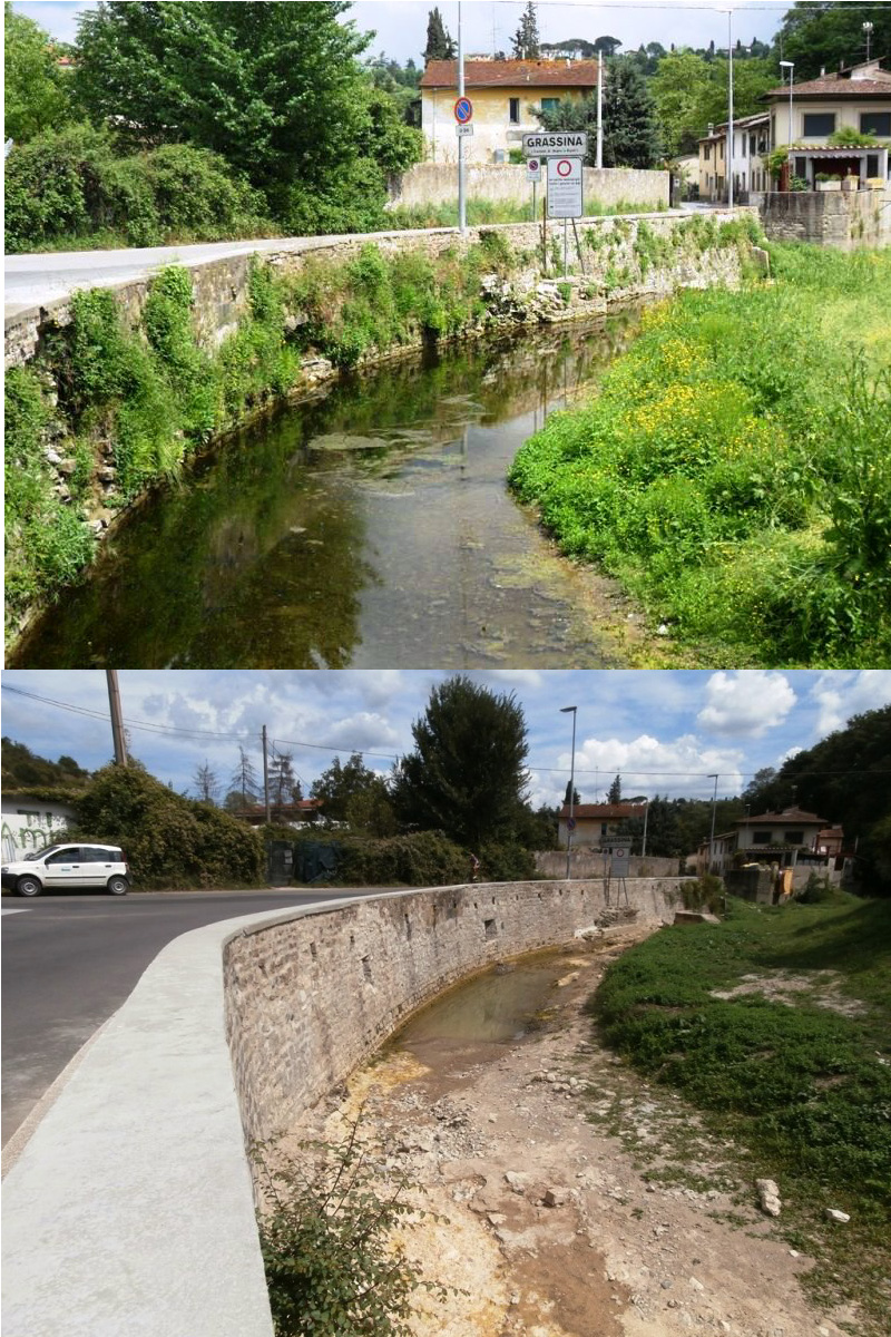 E anche se quest’estate non è stata poi una gran bella stagione il Consorzio di Bonifica del Medio Valdarno ha comunque portato avanti una campagna di ripristino di varie opere murarie, in particolare spallette di ponti, muri di sponda e traverse fluviali, localizzati lungo la Greve, l’Ema e altri corsi d’acqua minori del Chianti fiorentino.