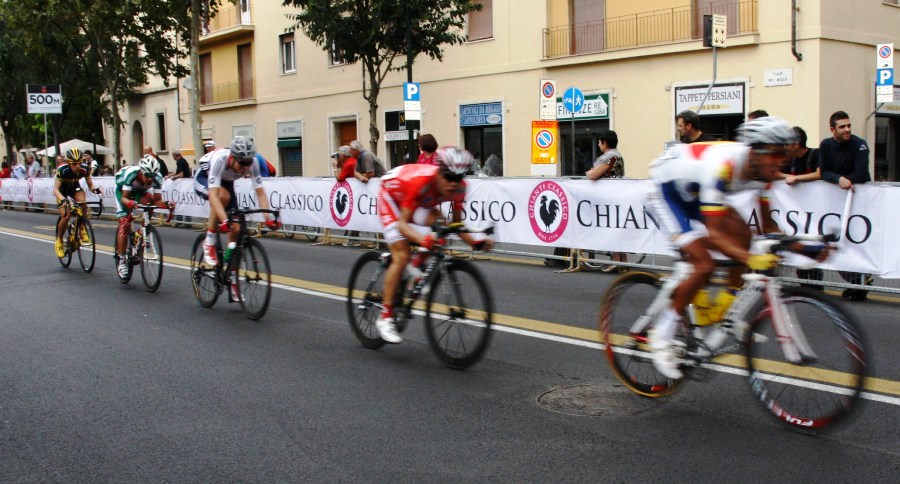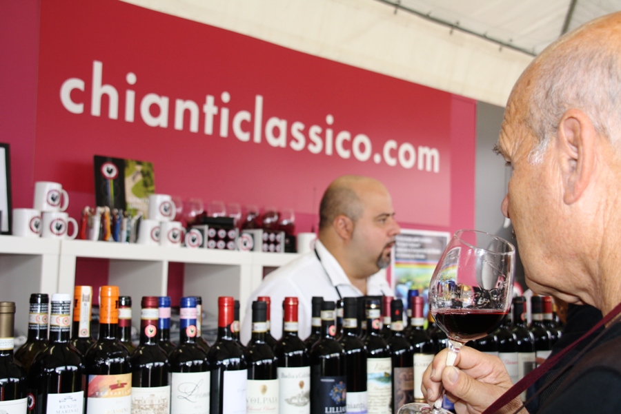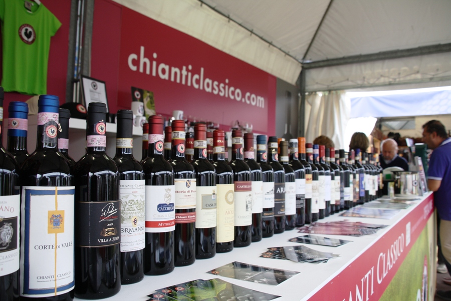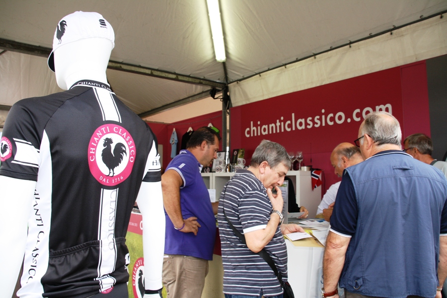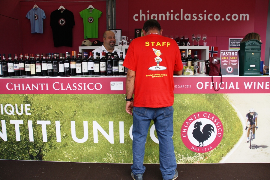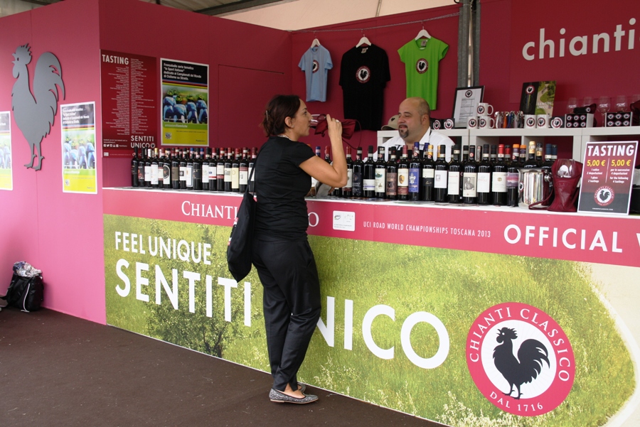 CHIANTI – Grande successo per lo stand del Consorzio Vino Chianti Classico nell'area arrivo dei Mondiali di ciclismo, a Firenze (sopra una super carrellata fotografica di Antonio Taddei).
