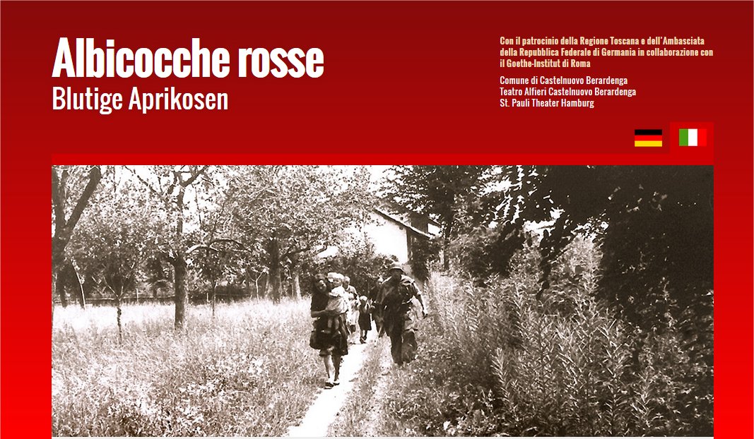 Il progetto “Albicocche rosse”. Lo spettacolo teatrale chiuderà l’omonimo progetto di collaborazione italo-tedesca realizzato sulla base di un accordo intergovernativo siglato nel 2012 tra i ministri degli esteri delle due nazioni e promosso con il patrocinio della Regione Toscana e dell’Ambasciata della Repubblica Federale di Germania, il sostegno del Ministero degli affari esteri italiano e di quello tedesco, di Hapag-Lloyd-Stiftung e la collaborazione con il Goethe-Institut di Roma e l’Istituto storico della Resistenza in Toscana.