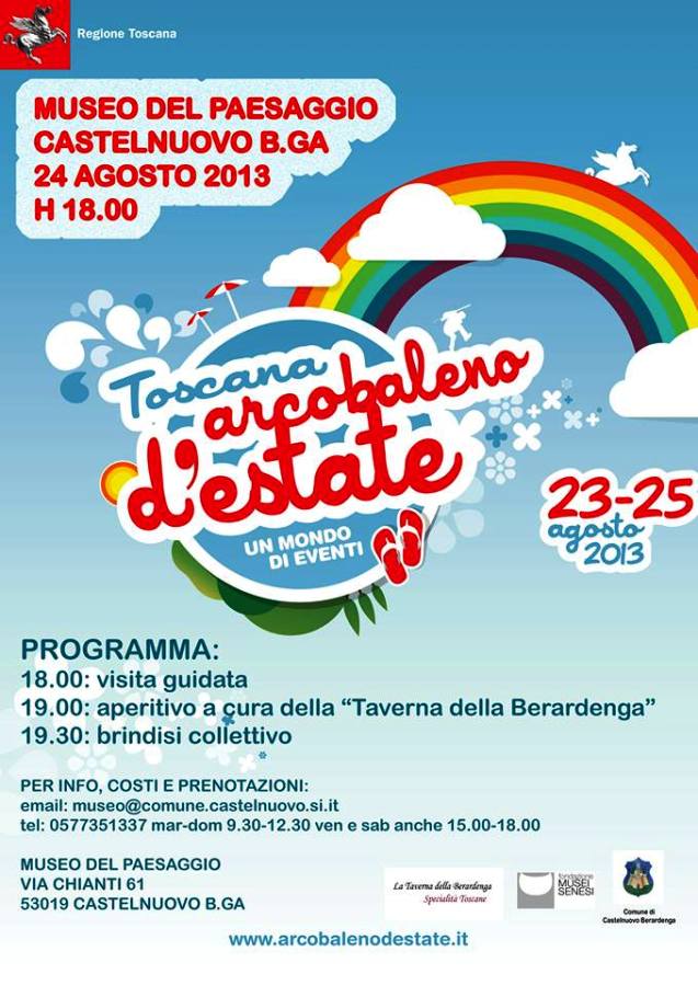 CASTELNUOVO BERARDENGA – Un evento speciale per festeggiare “Arcobaleno d’Estate”. E’ quello organizzato a Castelnuovo Berardenga per sabato 24 agosto in occasione dell’evento estivo che coinvolge tutto territorio regionale, rilanciato dalla Regione Toscana e coordinato sul territorio dalla Provincia di Siena.