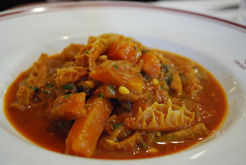 * Tortelli al lampredotto in salsa verde oppure crema di zucca gialla con sfilacci di guancia