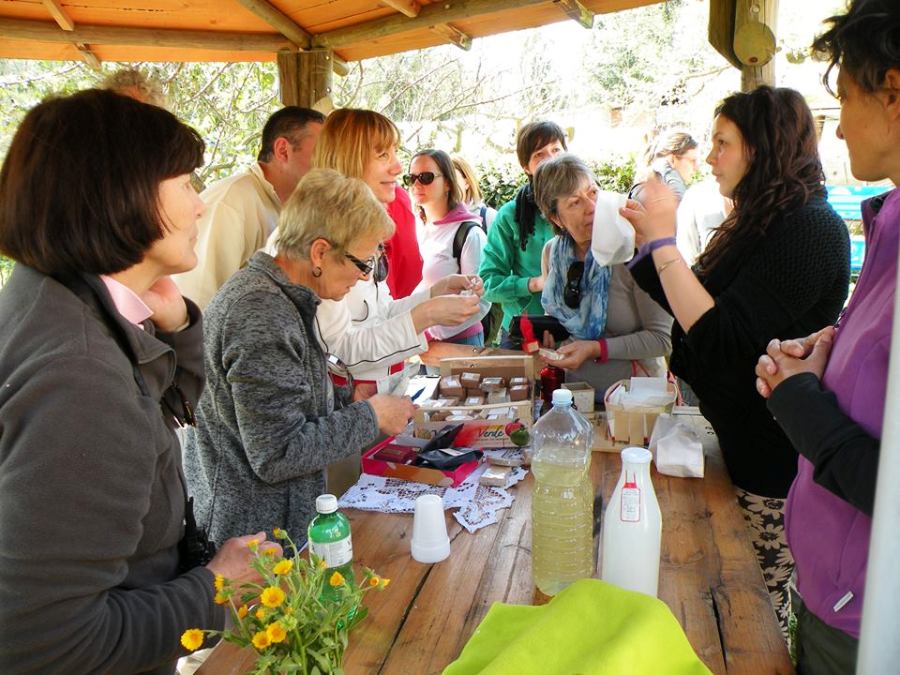 "La prima sosta – proseguono – è stata al podere Casella, accolti dalla gentilezza di Luisa, artista artigiana che ci ha spiegato come realizzare il sapone in casa a base di olio di oliva; abbiamo poi proseguito seguendo un tracciato nel bosco sulle pendici del Monte Maggio, il punto più alto della Montagnola Senese, seguendo la comoda strada sterrata abbiamo raggiunto il luogo della nostra pausa pranzo, Casa Giubileo, bella colonica nascosta nel bosco, oggi luogo della memoria, teatro di uno degli eccidi fascisti più crudeli effettuati in Toscana, dove il 28 marzo 1944 persero la vita 19 giovani partigiani che in questo podere furono accolti dai contadini del luogo, che cercarono di nasconderli".