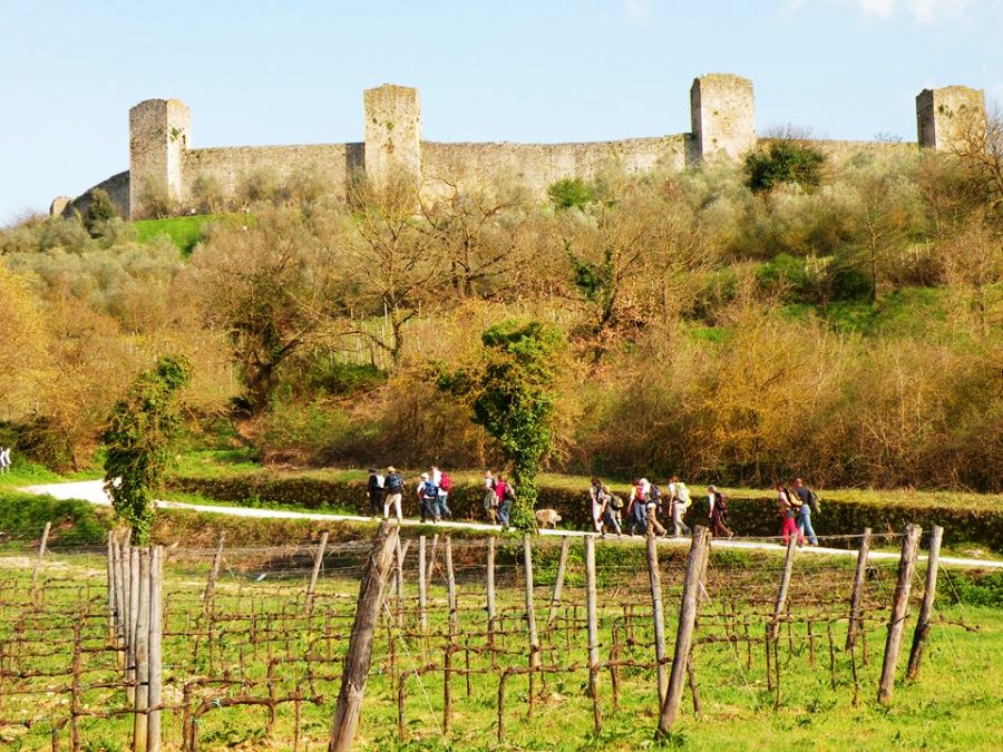 "L'ultima breve salita della giornata – spiegano ancora – ci ha condotti dentro al celebre borgo fortificato di Monteriggioni, uno dei luoghi più noti ai turisti che vengono in Toscana, che oggi forse abbiamo guardato con occhi nuovi, accompagnati da quella speciale stanchezza “felice” che appartiene solo a chi sceglie di lasciare la macchina e mettersi in cammino".